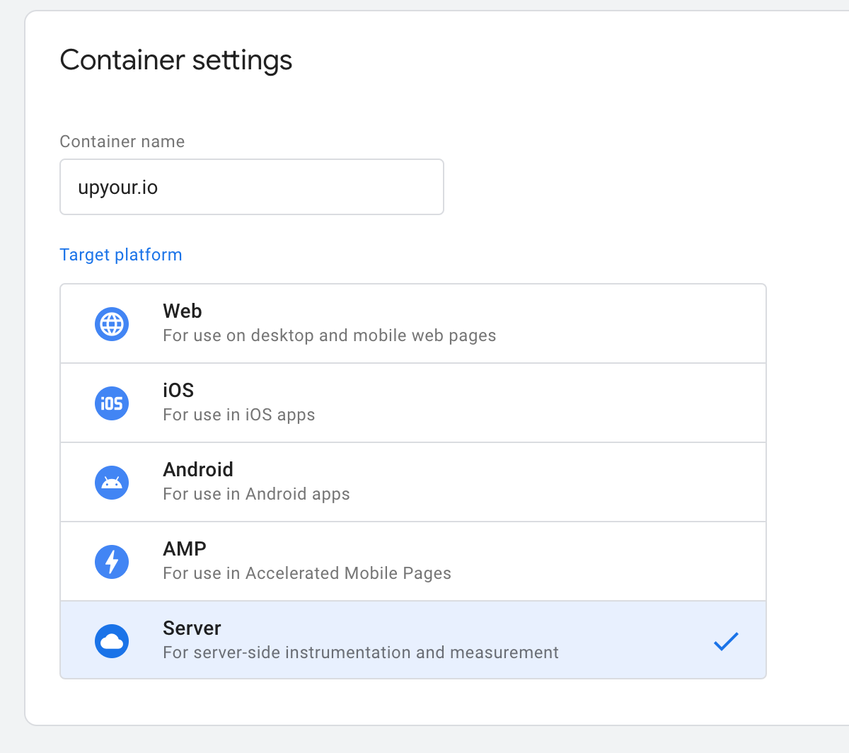 Setup configuration key with Google for Server Side Tagging